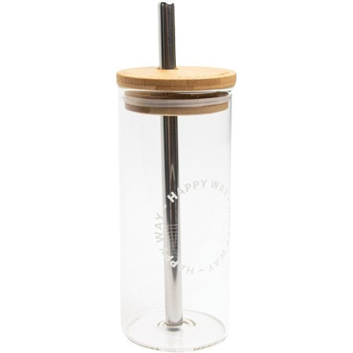 HAPPY WAY Glass Tumbler with Stainless Steel Straw 580ml