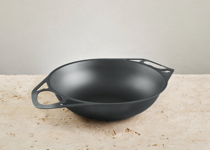 The 30cm dual-handled flat bottom wok is not only a high performance wok. No synthetic coatings - just clean, seasoned Aussie iron! Induction compatible.