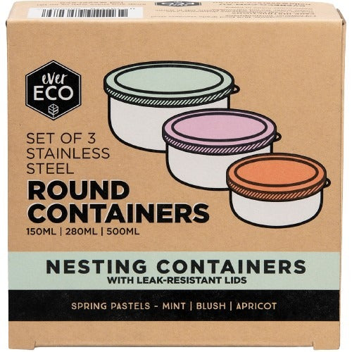 EVER ECO Stainless Steel Round Nesting Containers Spring Pastels 3pk