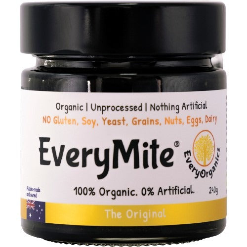 EveryMite has NO dairy, gluten, soy, nuts, yeast, grains, bad fat, added sugar, fillers or folic acid. It is an all-natural blend of quality organic ingredients.
