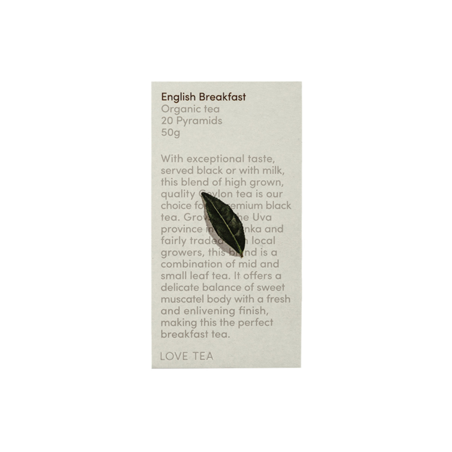 Love Tea Organic English Breakfast Tea x 20 Pyramids