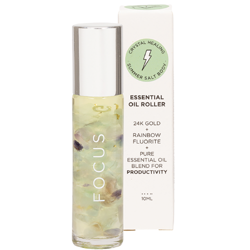 SUMMER SALT BODY Essential Oil Roller 24K Gold Focus Rainbow Fluorite 10ml